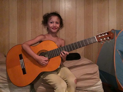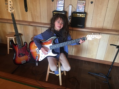 a plastic guitar. I began with a drum set and a toy red guitar that